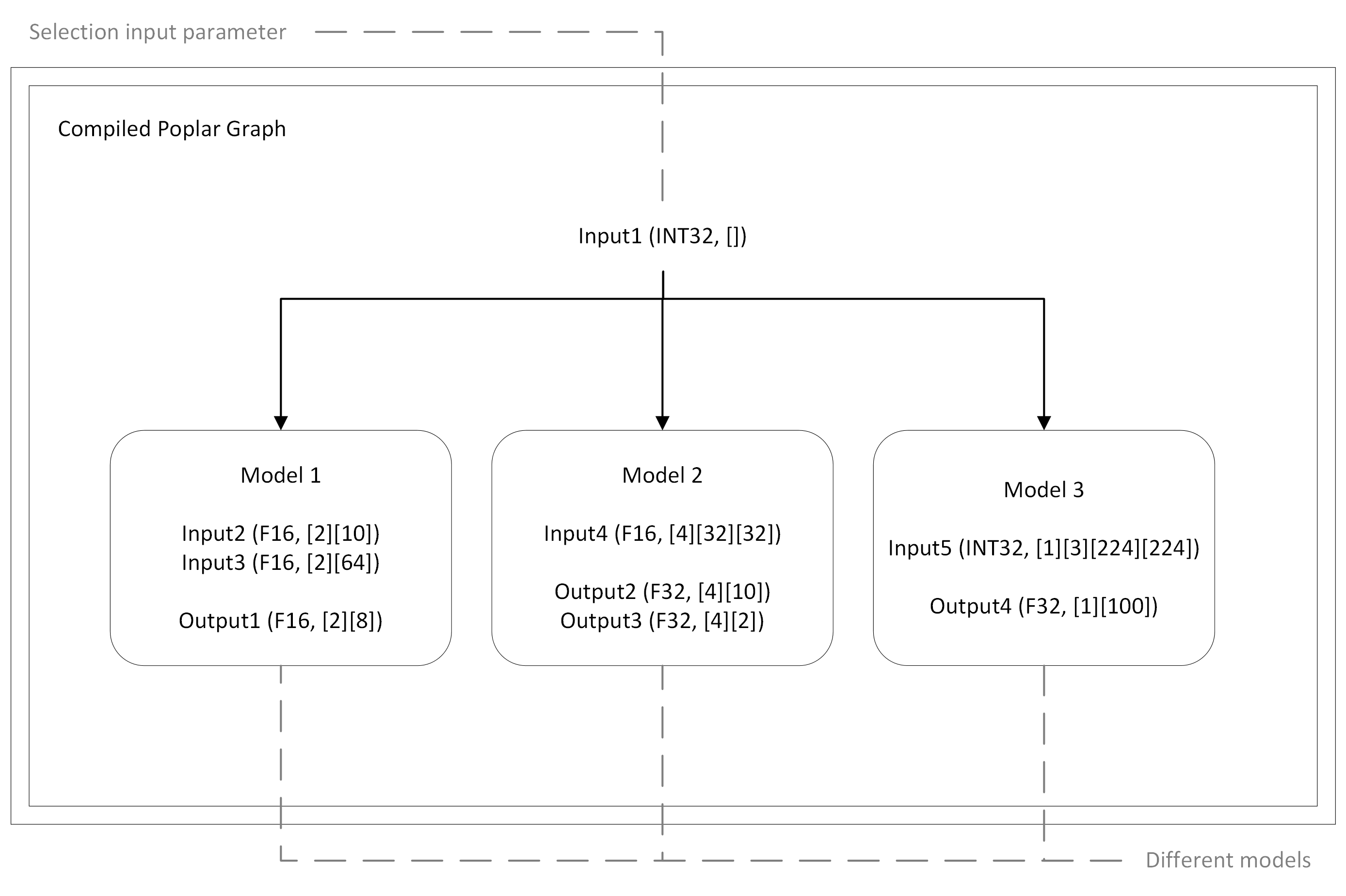 validate_io_paramsoption should be disabled. This option checks if you have provided enough input parameters to complete the request. In other words, it checks whether each parameter corresponds to an existing internal queue. By disabling it, you will be able to only provide inputs for the model you want to execute and not all models.You must know which anchors are associated with each model in the graph. When you send a request, you need to provide the data only required by the model you want to execute. The PopEF file contains information about what anchors the graph contains, but it does not contain information about which anchors are associated with a model. You can use the popef_dump tool to check what anchors are in the graph.