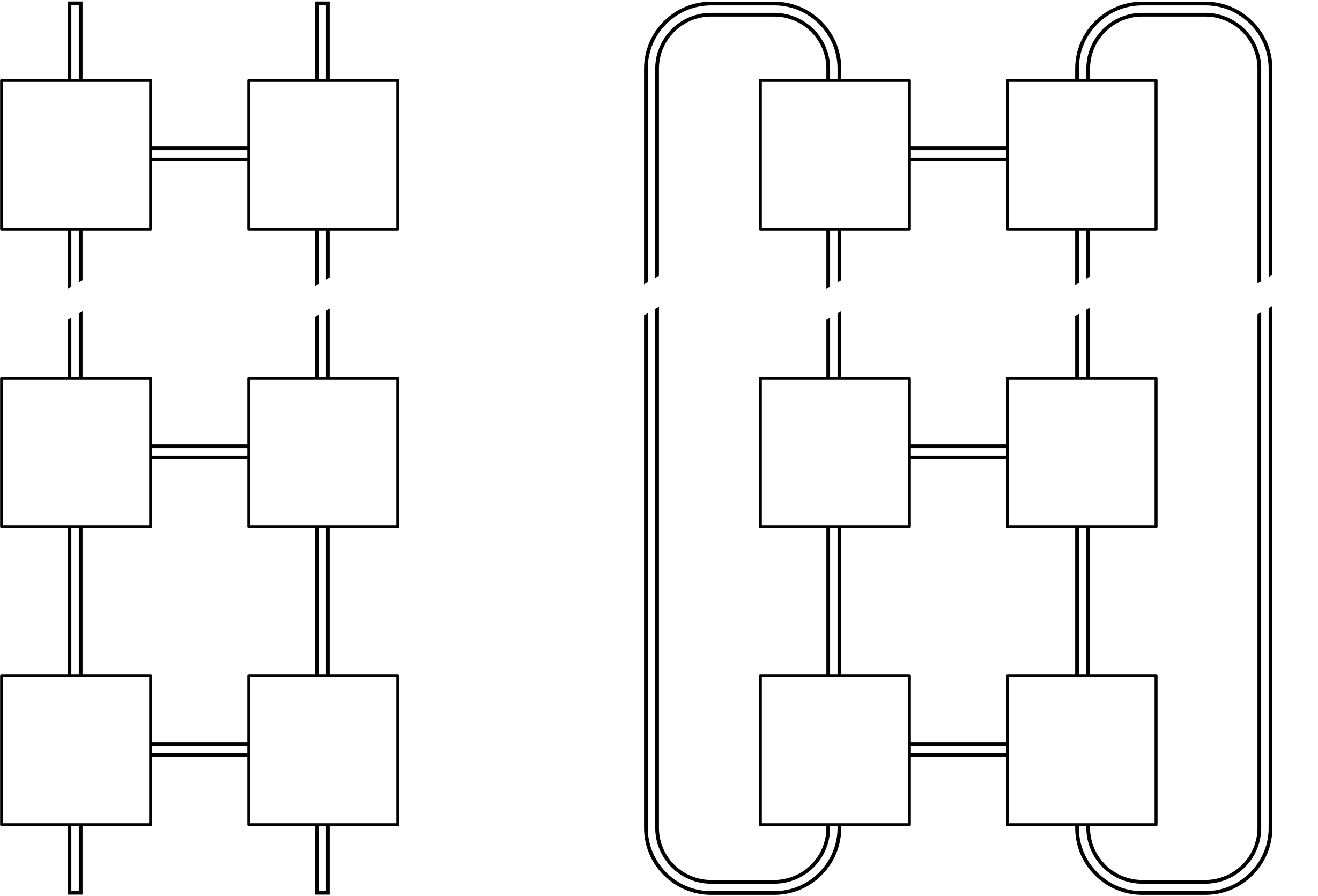 There are two ways of connecting IPU-Links and sync signals: in a mesh or as a torus. The mesh structure is similar to a ladder, where pairs of IPUs form each rung. In a torus, the ends of the “ladder” loop round to form a closed loop.