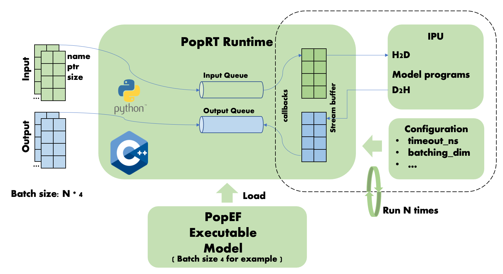 Since the IPU only supports static graphs, the fixed batch size needs to be specified during the model compilation stage. However, in the actual inference process, the batch size of the input data is usually not fixed. PopRT supports input data of any batch size by setting the following: