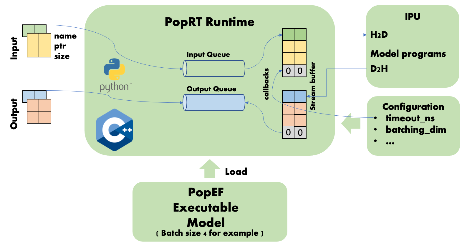 timeout_ns: The timeout period for PopRT to wait for data to form the batch size required by the PopEF model. The default setting is 5 ms.batching_dim: The dimension that contains the value for the batch size. The default value is0xFFFFFFFF, indicating that dynamic batch sizing is disabled.